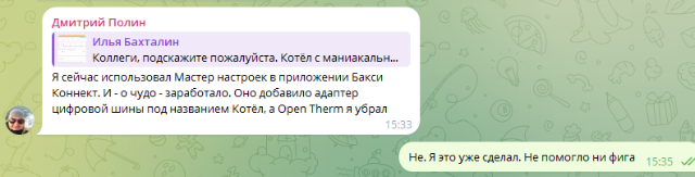 Ну что сказать. Котёл вполне себе откликается. Работает так себе, попробую пошаманить.