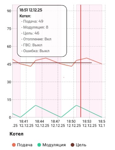 Да вообщем то всё так. Я не сильный знаток работы котлов. Мне всегда казалось, что котёл должен работать в режиме старт/стоп. Но, если непрырывная работа, для него норма, тогда замечательно!Bahus писал(а): 10 дек 2025, 02:13 Ну так здорово. Он поймал мощность при которой может поддерживать ваши уставки без отключения. Чего не так?