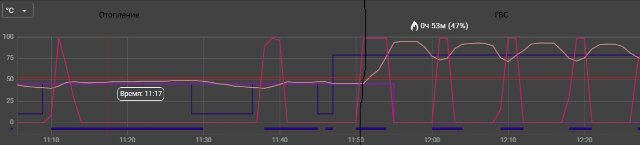 Из мыслей пока поставить реле задержки выключения на ЦН СО и ТП минут на 10-15, чтобы ТН побольше прогревался в режиме ГВС. Или не нужно заморачиваться и пусть работает как есть.