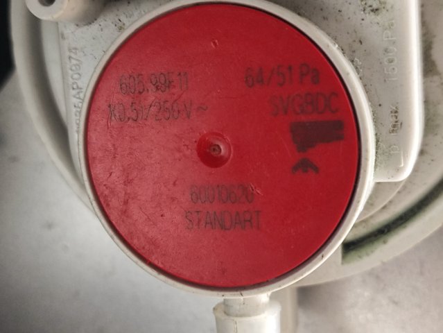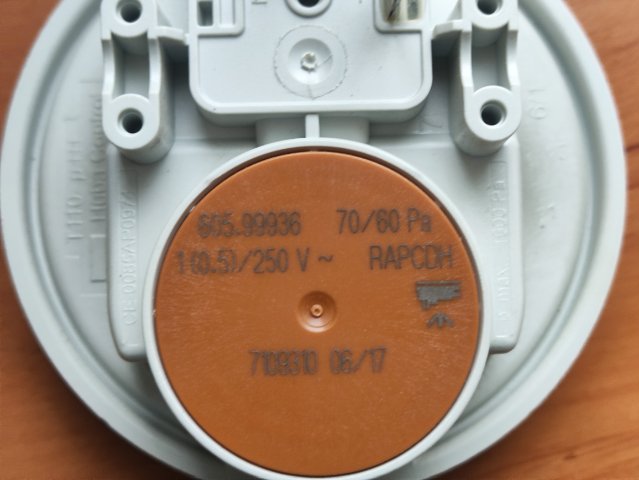 Я так понял у вас с открытой камерой котёл? Ну там термостат отходящих газов стоит. Слева на стабилизаторе тяги. Он нормально замкнут. При превышении 70 градусов размыкается и котёл валится в ошибку по тяге (е03). Датчик самовозвратный. При понижении температуры до 55 градусов датчик замыкается и ошибка уходит.