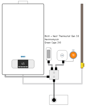 В итоге: термостат стал руководить запуском котла по заданной мной температуре + WiFi удаленное управление температурой через приложение Nest.