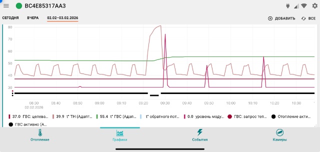 Вопрос почему Котел в БКН держит T в районе 52-55 при заданных 35 ? И почему при запросе на тепло Котел разогревает ТН выше 80C игнорируя настройки zónt по максимальной температуре?