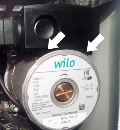 выключил из питания котел,потом снял клемму насоса,потом отвёрткой плоской с боку крышки насоса ближе к задней части вставил в щель немного и чуть провернул отвертку и на удивление крышка легко соскочила,действительно там переключатель на 3 скорости и был на максимуме,сделал на 2 скорость.