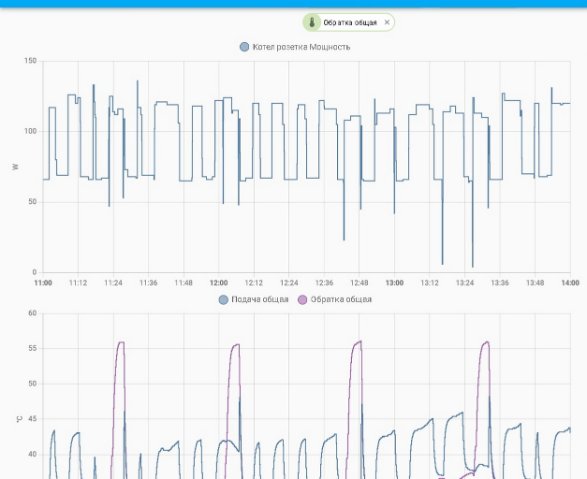 У меня нет Зонта. Штатная комплектация котла. График это из Home Assbstant. На нем хорошо видно что котел не выключается.