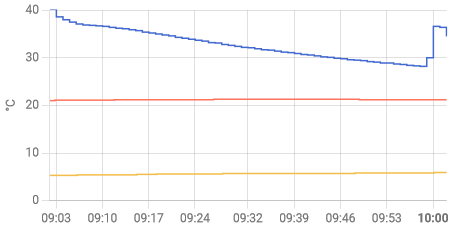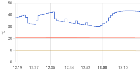 на второй картинке меньший промежуток времени работы котла. На третьем Температура на улице (синий) и помещении (красный)где панель.