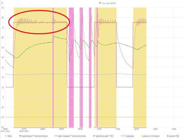 да вот как раз разглядываю тему соседнюю график...там при нагреве бойлера максимум 85 фактическая теплоносителя на графике...