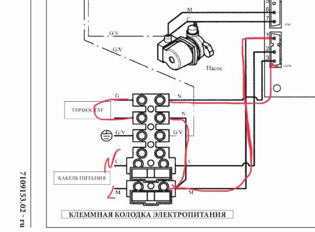 Но ведь судя по схеме термостат стоит в разрыве фазы, подключён параллельно питанию котла, но приходит на отдельную клемму 3 в CN10, куда идёт дальше и какая там нагрузка из схемы не ясно...