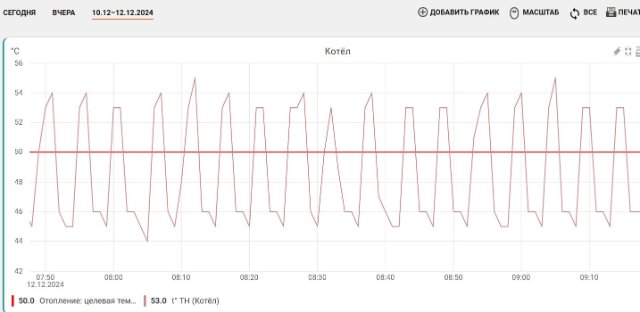 Комнатная температура постоянна - около 25 градусов. Поэтому дельта не беспокоит. Я понимаю, что котёл должен гореть постоянно. Но как это сделать в моём случае. Мне бы минимальную мощность котла уменьшить. Но как.Bahus писал(а): 16 янв 2025, 13:14 Ну если вас дельта в 30 градусов не смущает, то и пусть работает.