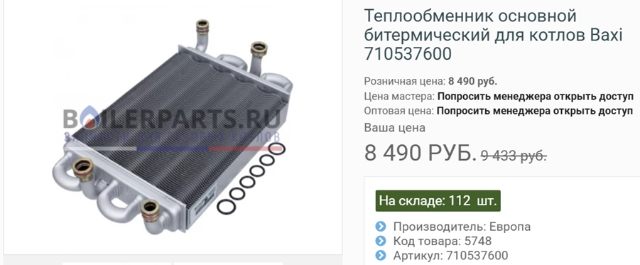 Здравствуйте, а Вы как специалист, как считаете какой брать теплообменник под замену? (вода жесткая в доме, и постоянные ее отключения, со всеми вытекающими осадками из подвала)Bahus писал(а): 12 апр 2025, 10:53 Да какой-нибудь бойлерпартс, наверняка. Хоть и артикулы сплошь от оригинала - цена точно не его.