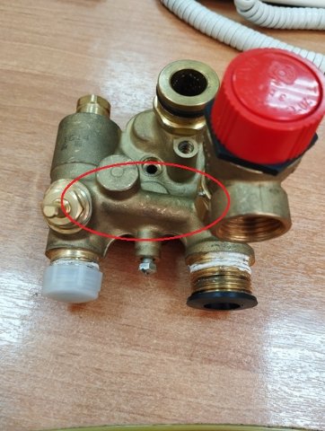 Далеко не пошёл. Есть у меня этот узел. Правда он с Луны-3, но они с ЭкоФор одинаковые. Вот перемычка, которая закрывается вентилем. Попробуйте туда проволокой твёрдой пролезть. Но, что-то вообще не верится что там могло что-то забиться.