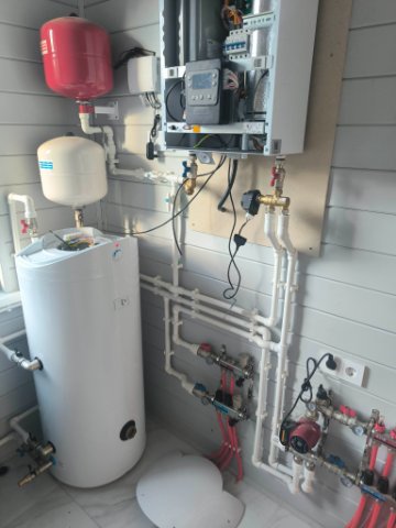 Добрый день. Подскажите, пожалуйста. Котел электрический BAXI ampera plus 12кВт, система отопления дома (1 этаж) теплым полом, плюс 2 радиатора и бойлер косвенного нагрева. На подаче котла, сразу после крана стоит трехходовой клапан BAXI с электроприводом, который разделяет подачу на ОС и БКН, гидрострелки нет. На Коллекторе теплого пола стоит смесительный узел со своим циркуляционным насосом, на коллекторе радиатора нет смесительного узла и он работает от насоса котла. Обратка СО и БКН общая, через тройник, обратный клапан не стоит. Ситуация следующая: при нагреве ГВС (очень долго греет БКН 150 литров) нагревается сначала обратка коллектора радиатора и при температуре теплоносителя выше 50 градусов подниманется температура подачи на коллекторе радиаторов. А так же, если смесительный узел на теплого пола полностью открыт, все аналогично с коллектором радиаторов, закрываю, подмеса нет. Трехходовой поменяли на новый, все аналогично, происходит подмес. Труба подачи СО при работе ГВС еле теплая, труба ГВС значительно горячее. В чем может быть причина, в трехходовом или надо ставить обратный клапан на обратку? Фильтр грубой очистки на обратке чистый.