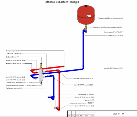 Касательно большой дельты 20-21 градус, думаю это из-за того, что котловой контур небольшой по объему. 22 труба нержавейка на подачу и обратку до/от гидрострелки по протяженности каждая максимум 80 см.