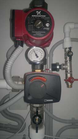 Таким образом если подмес на стрелке в котловом контуре запрещен, значит обязан быть подмес из обратки на стороне отопительных контуров. Если температура на радиаторах вас не устраивает можете смело увеличить уставку градусов на 5, свою обратку котел сам поддерживает на оптимальном уровне.