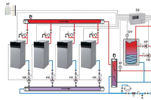 можно..схема из нового каталога...управлять будет контроллер Е8..но мне больше нравиться контроллер (Vaillant см630, добавить к нему модули VR31 в нужном количестве по 1му на 2 котла через первые 2...управлять через перемычки комнатного термостата..либо прграмматора отопления..)