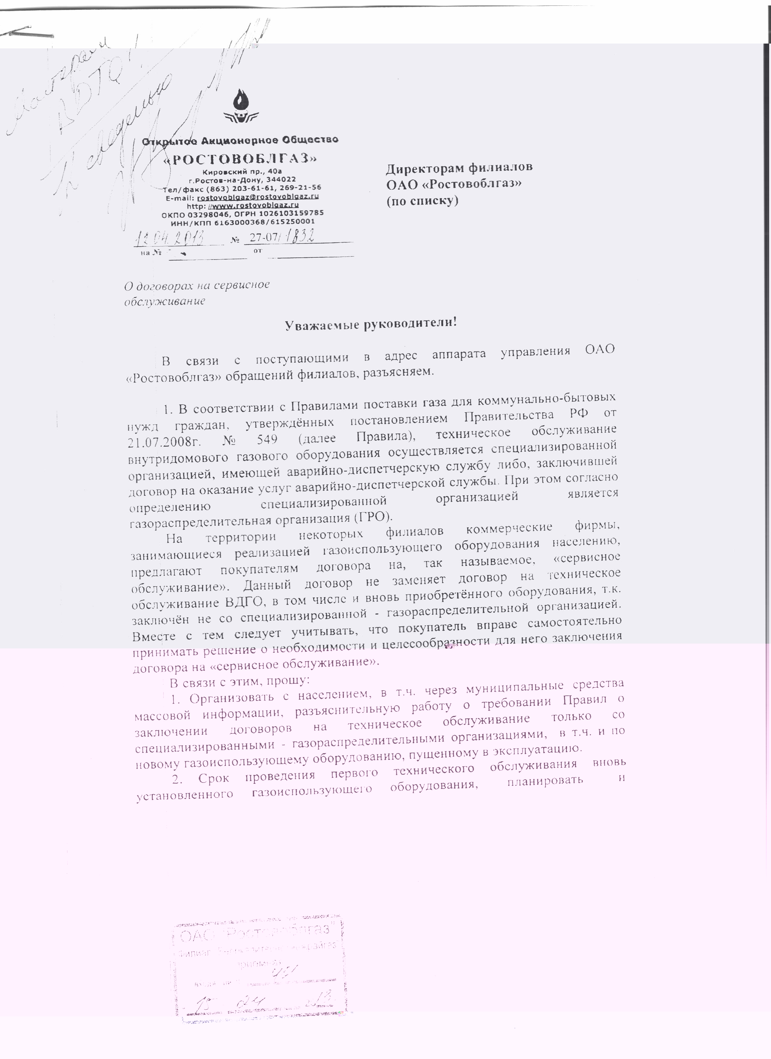 Данное письмо (оно находится во вложении), по мнению некоторых наших сервисных партнеров, представляет собой неоднозначный документ, затрагивающий интересы коммерческих компаний, предоставляющих услуги по сервисному обслуживанию котельного оборудования.