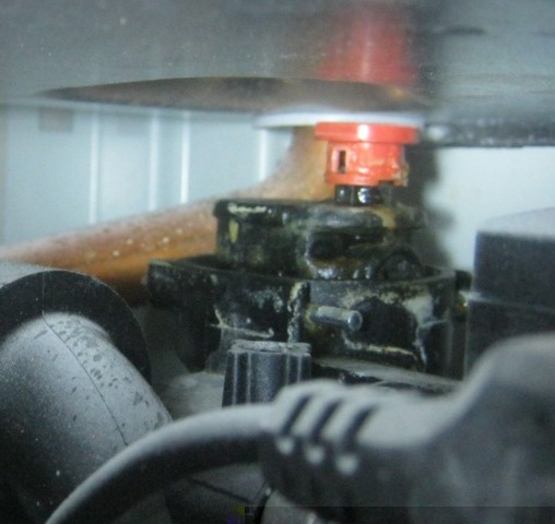 Закройте заглушку воздухоотводчика (красную пипку вниз до щелчка).