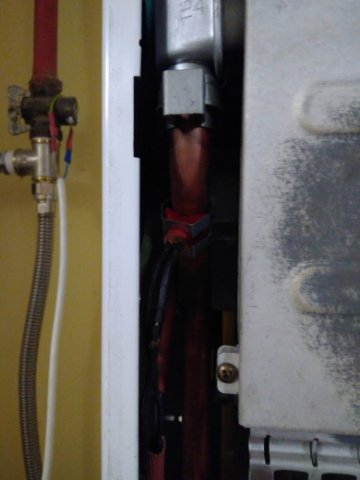 Пятно от нагрева. Скажем так - краска выгорела. Ошибка вылетает после включения, после 5-ти секундного обратного отсчета - сразу. До этого иногда появлялась - списывал на то, что параллельно подключен напольник по отоплению. Baxi включен только по ГВС, но контур отопления не перекрыт (для циркуляции), темп. теплоносителя не выше 68 грд.