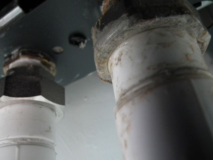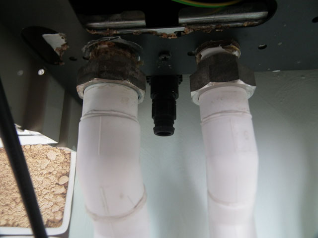 На фото - состояние трубы в месте подключения к котлу.