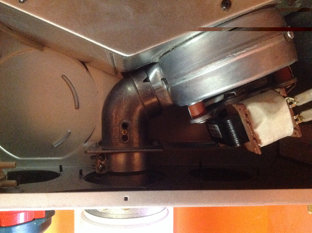 Я разбирал полностью вот это соединение(изгиб) между вентилятором и дымоходом. Там никаких колец/шайб нет. Всё чисто. Это называется Вентури?