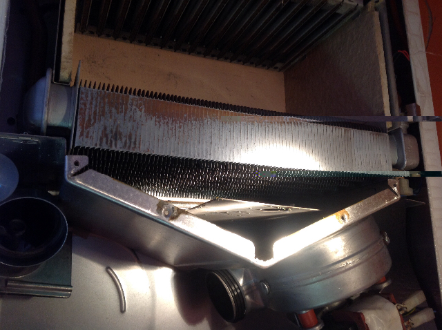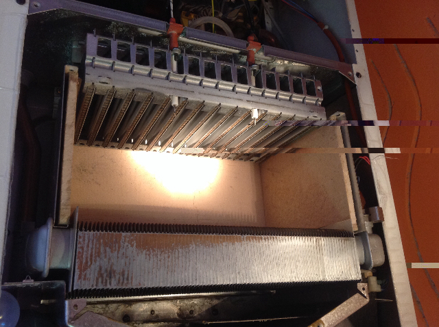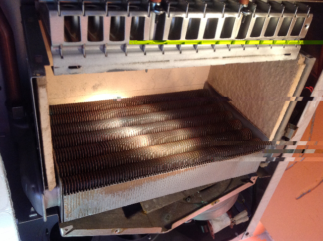 Вскрыл всё. Вычистил пыль с теплообменника, горелки. Вентури была чистая. Больше всего пыли наблюдал на лопатках вентилятора (плотный слой 1 мм), и под горелкой: мухи, комары и прочая пыль... Странно, что не используются грубые фильтры.
