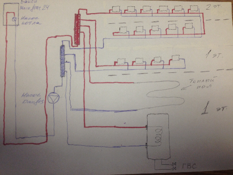 Доброго времени суток! Уважаемые форумчане, хотелось бы услышать Ваше мнение, тонкие места, ну и недостатки моей системы отопления. Основные вопросы - при площади дома в 200м2 Котел тактует возможно не достаток циркуляции а возможно и ещё что то... Все радиаторы оборудованы термоголовками, на гребенке есть регулировка по т. Полу, первому этажу и Бодлеру, второй этаж работает на прямую. Сразу отвечу на вопрос, гас через боллер по тому что между котлом и гребенками около 45 метров.