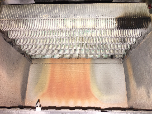 Теплообменник снаружи чистый. Когда дуешь в контур отопления, приходится напрягаться, такое чувство, что там что-то застряло.