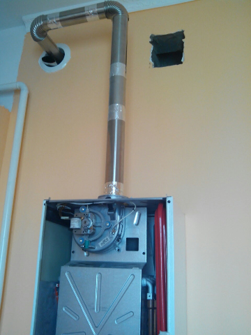 Фото переделанного сегодня дымохода ниже, мастера зуб давали что проблема была в старом, однако после переделывания ничего не поменялось. Воткнули 60мм дымоход, всасывание с комнаты. Так же проковырялись 3-4 часа и ушли. Дымоход кирпичный, задувал воздух с улицы, поэтому подняли на 5 рядов кирпичей (обычный красный). Со слов мастеров давление газа хорошее.