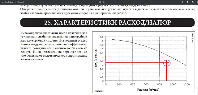 Уважаемый plehan, раз уж так получилось, что у нас диалог, буду к вам обращаться. В общем я все пересчитал, пересмотрев методики подсчета на канале Valtek. По поводу гидравлики там говорилось, что потери давления в ветке(кольце) считаются методом сложения потерь давления в котловой ветке+ветка с самой большой потерей, в других источниках люди просто плюсуют все потери по все веткам, я в общем все плюсанул и перевел в "метр водяного столба", полученные данные поставил в табличку из инструкции к котлу (снимок прикладываю). Из этой схемы я так понимаю полоса показывает максимальные характеристики? То что у меня получилось говорит о том, что мне встроенного в котел насоса хватит для моей системы отопления? Спасибо