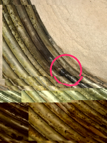 Потемнение обычно указывает на перегрев в этом месте, отсюда скорее всего и трещина.