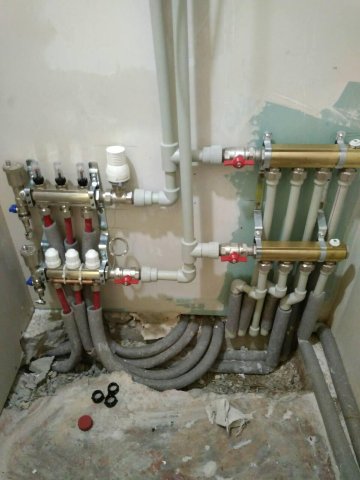 На фото видно как собраны гребенки и сделано подключение. - 9м (теплый пол + радиатор с термоголовой 500*1000)