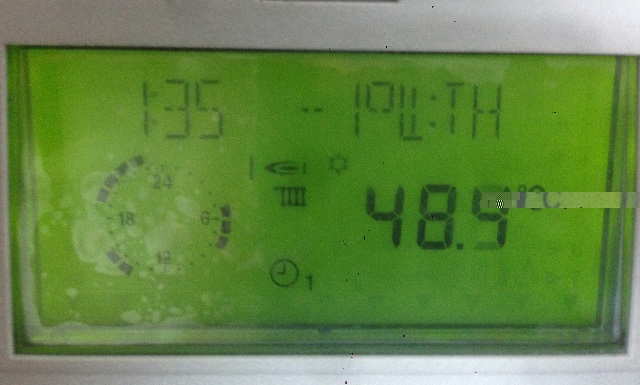 Все верно. На экране видно время 1:35, которое не укладывается ни в одно из временных диапозонов (черные сектора от 5 до 8, от 14 до 16 и от 19 до 23), а контроллер все равно дает команду на запуск котла.