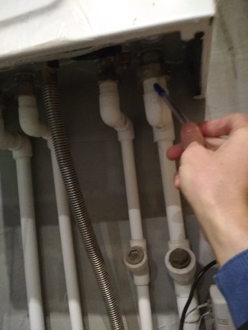 Когда ухожу из дому страшно оставлять котел включеным + экономия газу. По приходу домой давление падает до 0. Снизу котла откручиваю штуковину, давление поднимается до нужного уровня и закручиваю обратно. В этот момент начинает капать вода из трубы снизу котла (показано ручкой на фото). Только когда включаю отопление вода перестает капать.