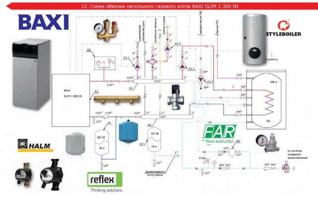Котел Baxi slim 1300 in (схема подключения - см. рисунок) гудит при работе на ГВС. При включении по датчику от бойлера котел начинает выходить на полную мощность. Гул появляется сразу. После пары минут работы - гул ослабевает, но не пропадает до конца. После отключения бойлера - гул пропадает. При работе на систему отопления гула нет. Гул похож на гудение труб (гудят не трубы, а именно котел).