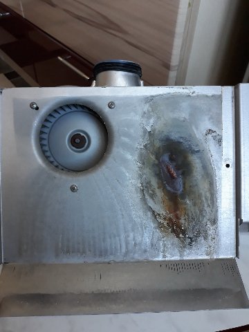 До сего момента обслуживание котла занималась сервисная компания. По определенным причинам решил договор не продлевать. Для ревизии вентилятора вскрыл камеру. На внутренней стороне крышки с вентилятором обнаружил вот такую картину. Внешняя сторона совершенно чистая. На задней стенке тоже какие то разводы. Что это может быть и с чем связано. Сколько времени прошло с появления нагара сказать не могу т.к. действия сервисменов, к великому стыду