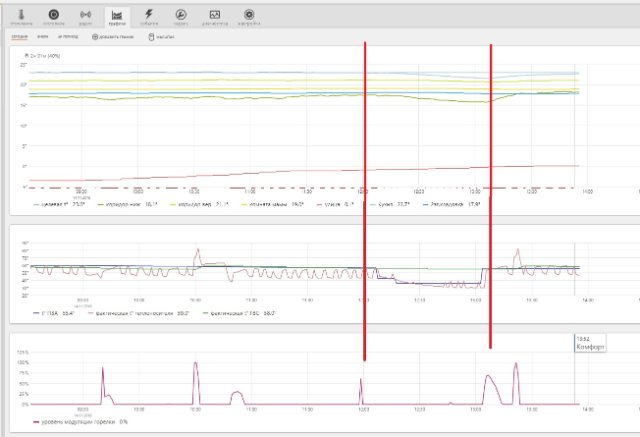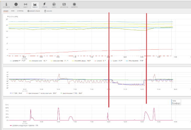 До 10:55 котел работал в псевдо-релейном режиме, с 10:55 перевел в обычный openterm +ПЗА №14.