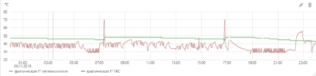 Но это видно только по графику температуры теплоносителя. Уровень модуляции горелки почти всегда 0.