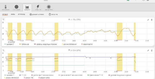 НО по факту котел в это время включался как и полагалось (видно по верхнему графику температуры в котельной)Короче я теперь даже не понимаю в каком режиме работает котел - то есть какая температура ему задана (и кто эту температуру задал тоже не ясно)