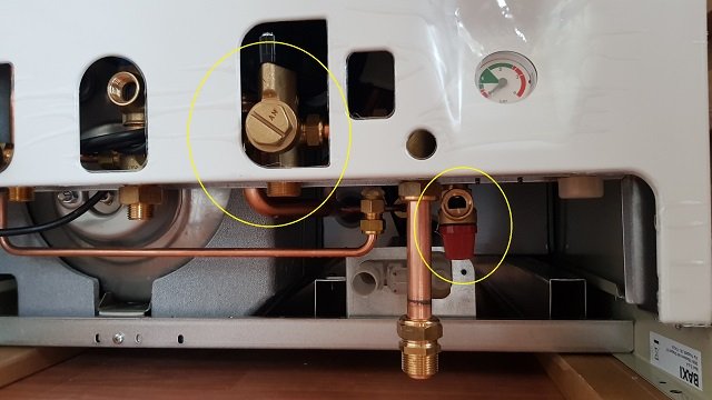 1. Если я правильно понял, фильтр грубой очистки обратки отопления там, где я выделил желтым? На него лучше не рассчитывать и врезать внешний? Справа предохранительный клапан, знаю ) 2. С синим колпачком предохранительный клапан на холодной воде, его тоже просто в сброс подключить и не трогать?