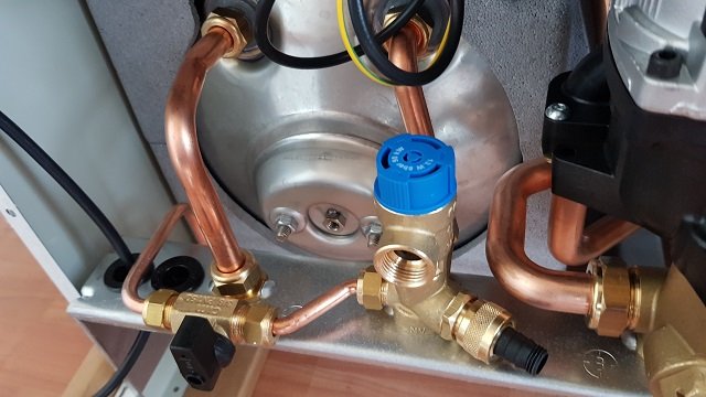 2. Синий - аварийный клапан на ГВС 8бар. Рядом сливной вентиль бойлера. Из какой подводящей магистрали сливать? Отдельный кран врезать? Так тут уже всё есть.