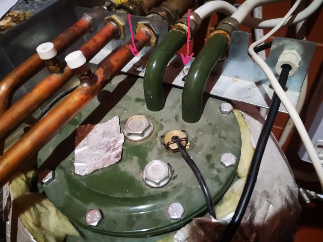 Пс: Особенно интересует вопрос - как лучше вывиньтить шпильки из фланца, которыми он крепится к планке с трубками? Чтобы не отсоединить со и газ, а бойлер вытащить справа. Выглядит так: