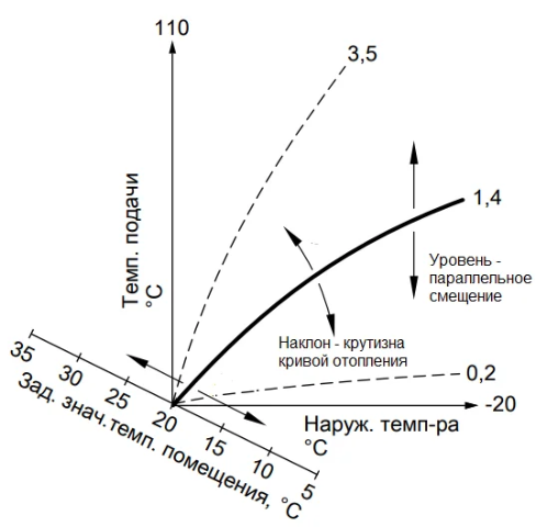 Вы в курсе, что все температурные кривые, вне зависимости от бренда котлов, рассчитаны на 20°? Про параллельный сдвиг кривой знаете? Т.е. на сколько градусов вверх параллельно оси температуры теплоносителя сдвинется ваша кривая 1,3 при ваших 23,7°, что явно больше 20° аж на 3,7!!!artful.tiger писал(а): 22 ноя 2021, 19:02 Если например в комнате открыть окно, то котел врубит на 65 не смотря на то, что на улице 0 градусов и kreg 1.3 (по кривой это должно быть около 50 градусов)