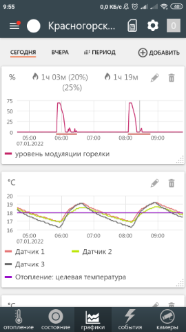 Evgeny K писал(а): 06 янв 2022, 11:53 10 мин (F11-10), температура на входе 50 в котел, на выходе 75, модуляция достигала до 60 %