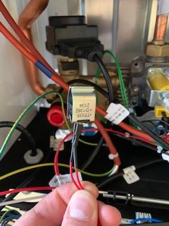 Всем добрый день! Доехал я до дачи и решил сам посмотреть котел, открыл крышку, на первый взгляд все на месте ничего не болтается. При дальнейшем осмотре нашёл железяку висящую на двух красных проводах (как оказалось датчик) внизу сзади, посмотрел в интернете картинку где он должен стоять, вставил и всё заработало как часики!