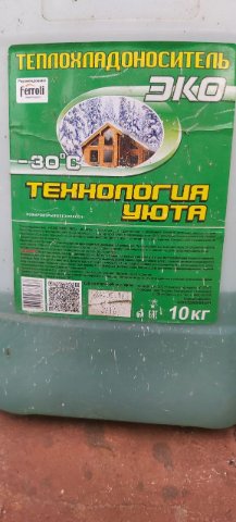 Специально слазил в подпол и нашел канистру с остатками "жижи". В батареях залит теплохладоноситель ЭКО -30. Фото этикетки на канистре прилагаю. Зимой в доме не жили и котел был выключен. Чтобы не разморозить батареи это и было залито.