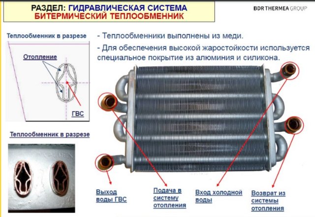 Посмотри на устройство теплообменника.