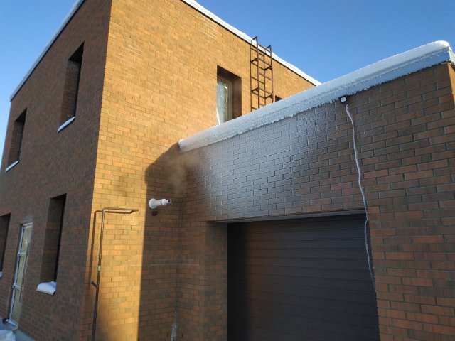 Изначально на дымоходе был наконечник Кратс, газы из которого идут в разные стороны, а не прямо. Я сделал заглушку со стороны гаража, думая что направлю газы от стены. Но не вышло, замёрз забор воздуха. Щас наконечник убран.
