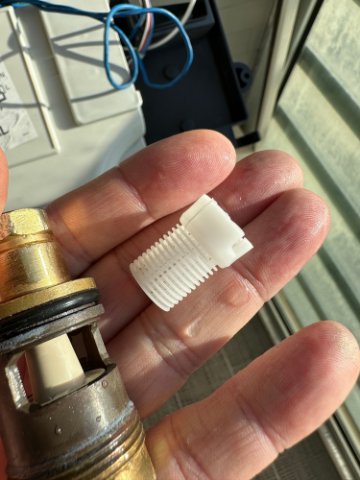 Всем привет! Котел Luna 3 280i, двухконтурный. Сегодня решил прочистить фильтр холодной воды на подаче в котел, так как увидел что напор ГВС упал. Делаю это не в первый раз, но сегодня после прочистки фильтра решил не ставить его, так как напор ГВС намного ниже чем холодной воды, раза в 2 на вскидку. Подумал, что тонкий сетчатый фильтр "съедает" часть напора, но какого же было мое удивление, когда без него напор ГВС превратился в тонкую струйку. Отсюда вопрос, как так и за что отвечает этот белый пластмассовый фильтр?