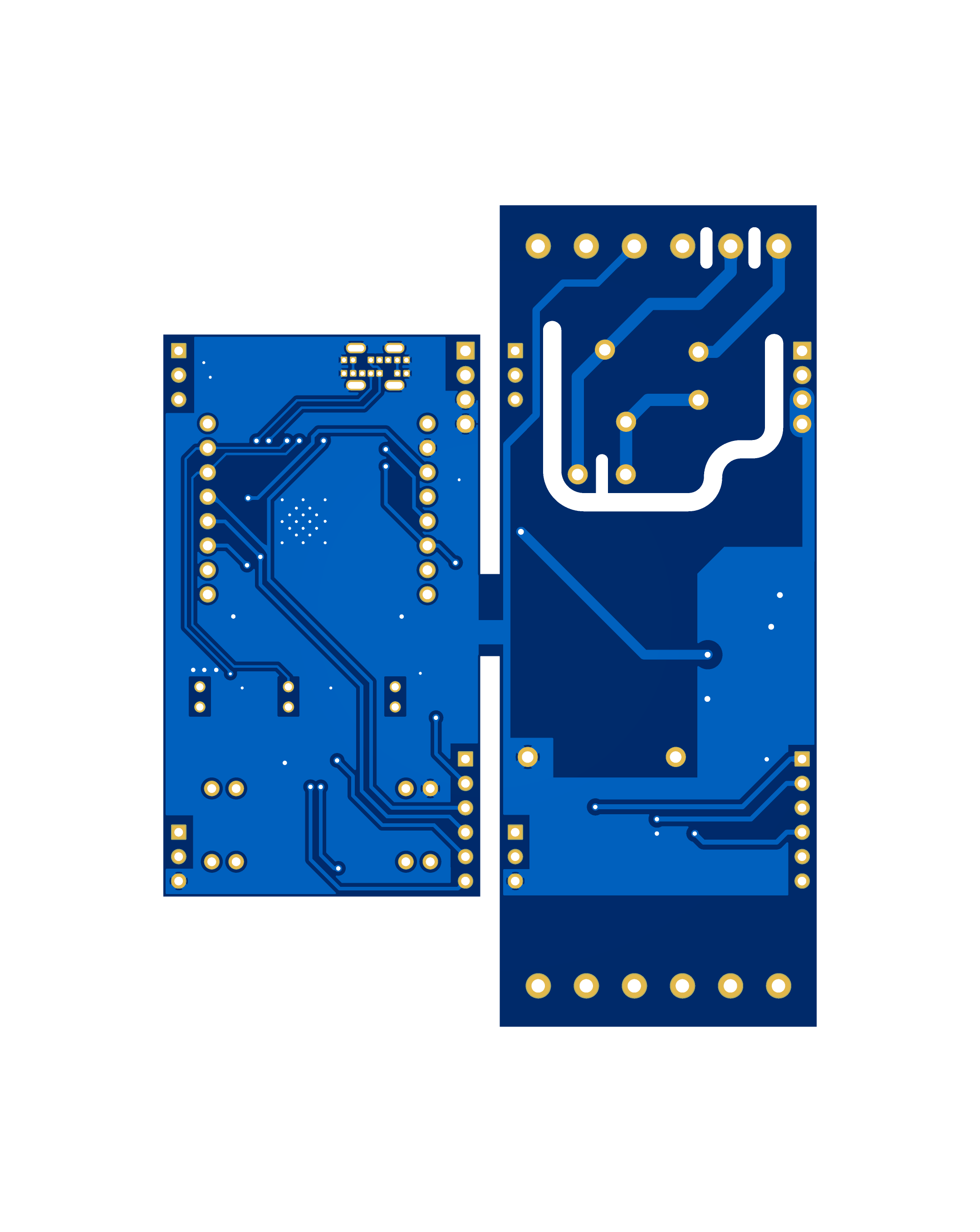 Заказывается как один дизайн, перед сборкой разделяется на 2 части: верхнюю и нижнюю. Последняя версия адаптирована под SMT сборку, но и вручную без проблем собирается.