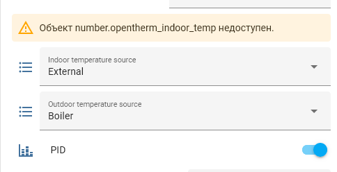 Прописал в HA автоматизаци для внешних Indoor temperature и Outdoor temperature (согласно инструкции) с гитхаба.