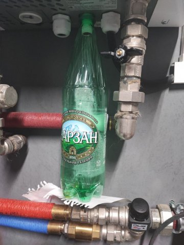 Подвесил бутылку, как у вас и увидел, что теплоноситель через предохранительный слив убегает.